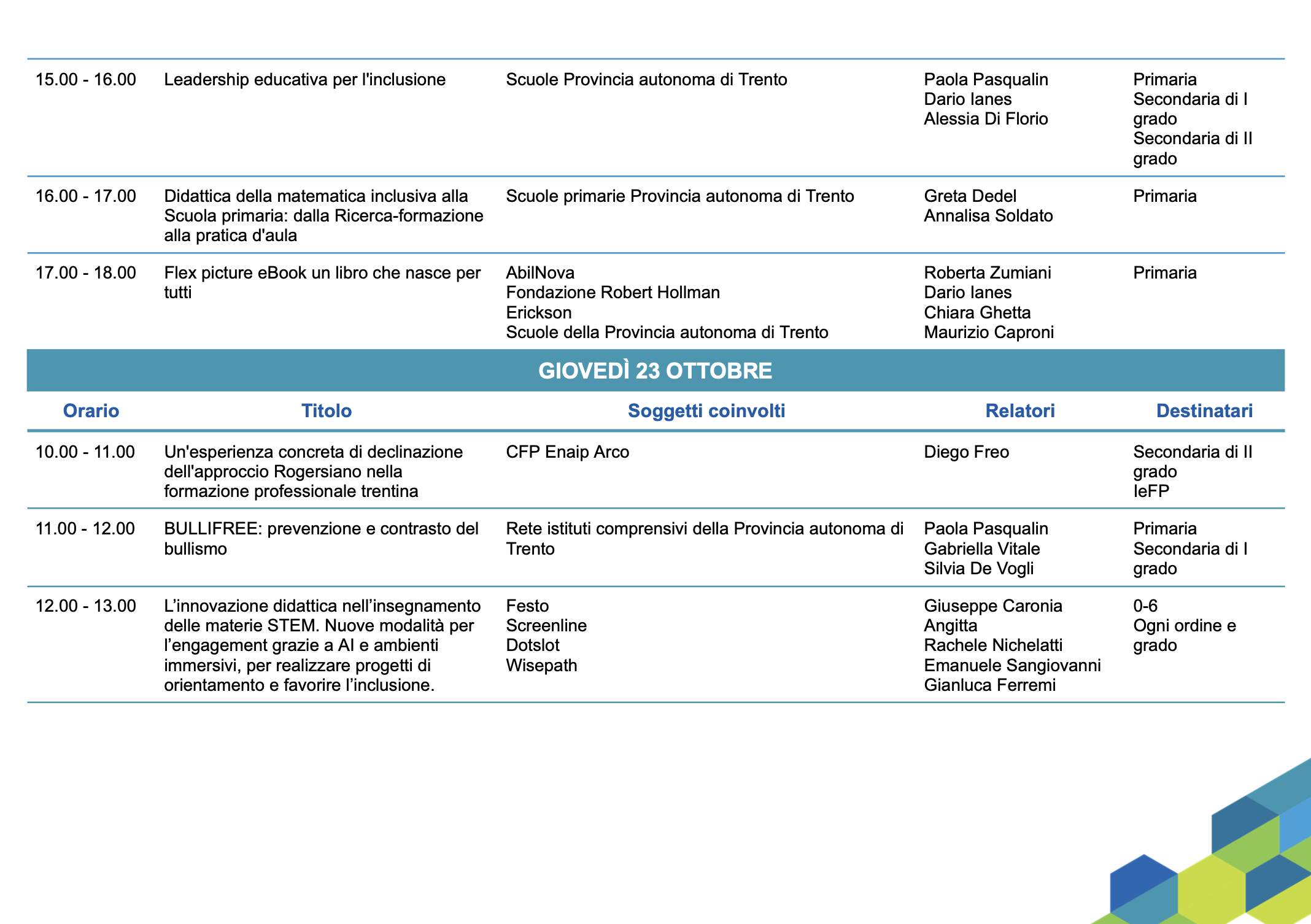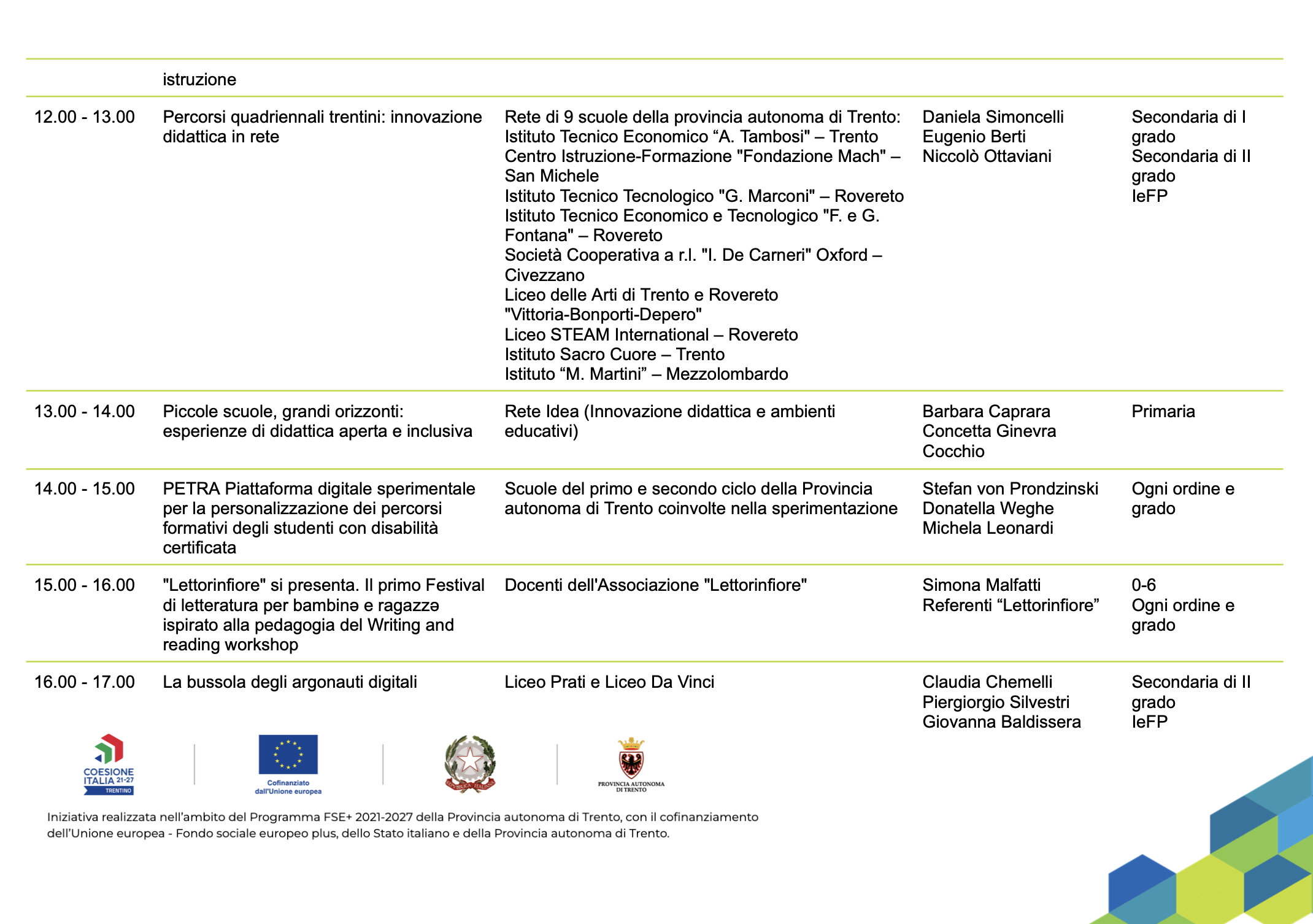 Didacta Italia - Edizione Trentino SPEAKERS’ CORNER Stand istituzionale della Provincia autonoma di