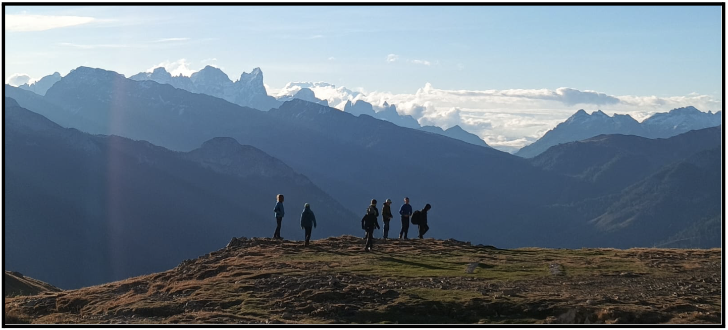 Dopo un tragitto che ha permesso di percorrere la Val d’Adige, la Val di Fiemme e la Val di Fassa, alle 10:30 il gruppo ha raggiunto Passo Costalunga, o Passo di Carezza, un valico alpino a 1.753m s.l.m., situato al confine fra la provincia di Trento e quella di Bolzano, che funge da cerniera tra il Gruppo del Catinaccio e il Gruppo del Latemar. Questa zona, famosa per l'affascinante Lago di Carezza, è oggi anche un luogo di profonda riflessione, poiché fu tra le più colpite dalla tempesta Vaia nell'autunno del 2018. Durante la salita in autobus, gli alunni hanno avuto la possibilità di osservare le ferite lasciate sul paesaggio, evidenti nelle grandi chiazze di prato incolto dove i residui delle radici degli alberi sradicati testimoniano la violenza dei venti che, tra fine ottobre e inizio novembre 2018, scatenarono l'inferno con schianti da vento in Francia, Italia, Croazia, Austria e Svizzera.